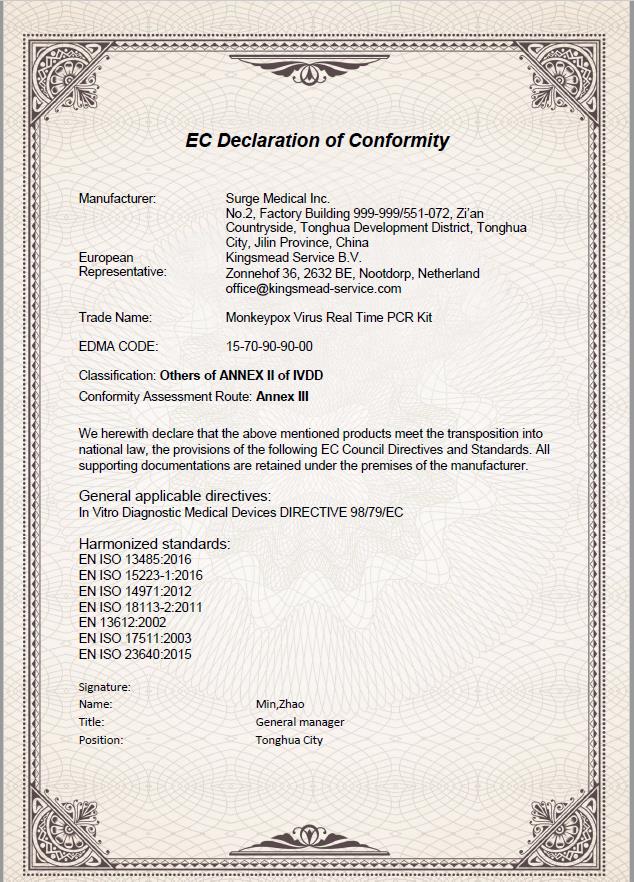 王放教授团队继研发4款COVID-19快速诊断产品后,应国家和社会需求,近期开展了关于猴痘检测试剂盒的研究。据中国吉林网报道,截止2022年6月1日,全球30个非猴痘流行国家和地区已上报550多例猴痘确诊病例。王放教授团队联合吉林双正医疗科技有限公司,依托吉林省科技厅“精准感染病学重点实验室”、吉林大学转化医学院、通化市科技局和吉林双正医疗科技有限公司共同签署的“体外诊断试剂POCT研发技术平台”等科研平台,紧急研制出了两种猴痘病毒检测试剂盒——猴痘病毒抗原检测试剂盒(胶体金法)和猴痘病毒核酸检测试剂盒(荧光PCR法),并于2022年5月24日获得了CE认证。这是王放教授团队在传染病诊断检测方面又一重要成果。