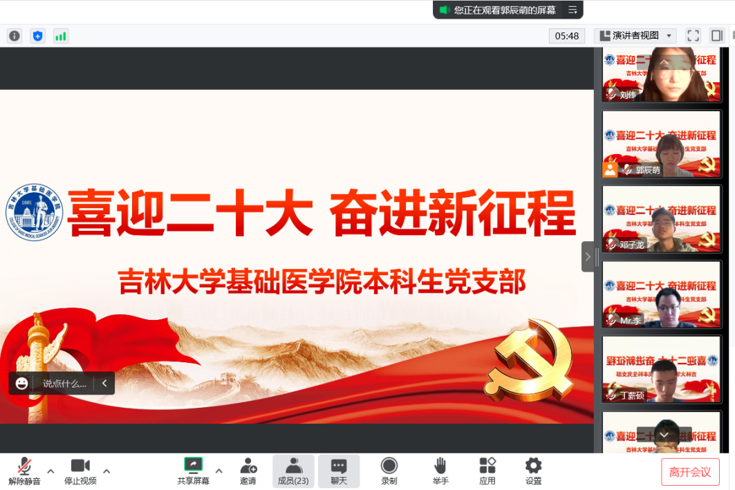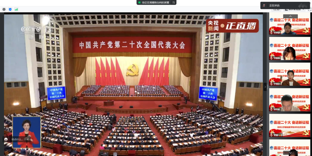 组织全体本科生相聚云端,换上“喜迎二十大,奋进新征程”的会议背景,在庄严热烈的气氛中喜迎党的二十大胜利召开,线上收看党的二十大开幕式,聆听总书记报告,共同见证党和国家政治生活中的大事。