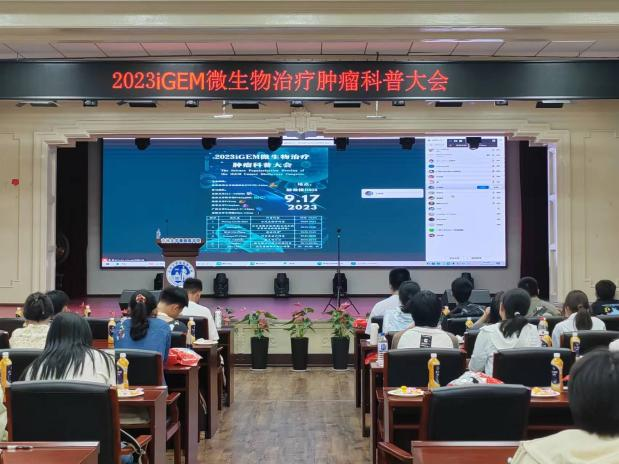 学院党委副书记李东洋,iGEM参赛团队指导教师张灵、杨明,2023级生物医学科学专业班主任辛卓远、闫天昊和全体2022级、2023级本科生共同参加了本次活动。在会上,6支iGEM团队分别汇报交流了自己团队在微生物治疗肿瘤方面开展的研究思路和研究成果。欧博官网