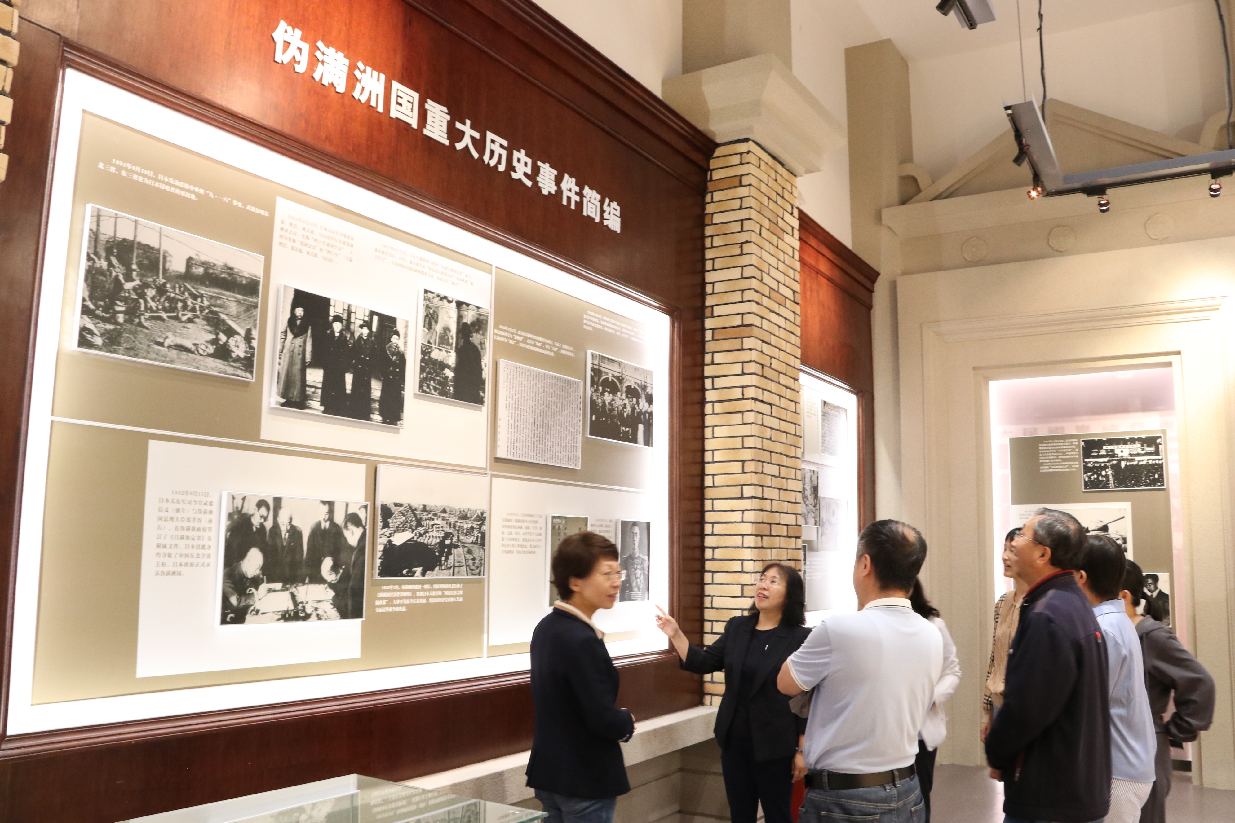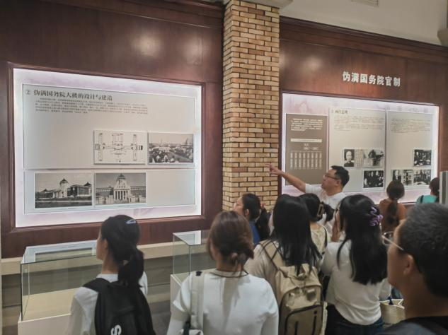 在学院党委书记王晓荣的带领下,老师们参观了基础楼五楼的爱国主义教育基地一一伪满洲国警示教育展览馆。这里陈列着伪满国务院大楼的设计与建造的简介、伪满国务院官制、伪满洲国重大历史事件简编、和日本战败递交投降书的人物模型。参观结束后,师生共赴双阳区开展实践研学—参观新农村建设。