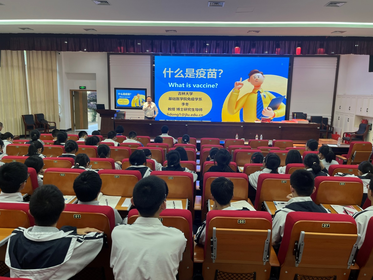 在松阳县第一中学,陈龙副院长代表吉林大学授予松阳一中“吉林大学优秀生源基地”牌匾,并肯定了松阳一中的教学质量和生源素质,对松阳一中近年为吉林大学培养多名优秀生源表示感谢。李冬教授以《什么是疫苗》为题,为三所中学的同学们开展了三场科普讲座。李冬教授带来的精彩演讲不仅突出知识性、科学性和通俗性,更强调趣味性和新颖性。他以浅显、幽默的语言,讲授深奥的现代生物技术知识,介绍最新的疫苗研究成果和未来发展趋势,营造了浓厚的科普活动氛围。讲座后,李冬教授以《筑梦启航在吉大》为题对吉林大学的办学优势、办学特色、学科设置、人才培养特色及未来发展等方面进行了详细的介绍,并解读了吉林大学在浙江省的招生政策和录取情况等。宣讲结束后,陈龙副院长和李冬教授现场解答学生们提出的各种咨询问题。同学们反响热烈,对吉林大学展现了浓厚兴趣,李冬教授还为很多邀请签名的学生签名留念并留下联系方式,招生宣传达到预期效果。