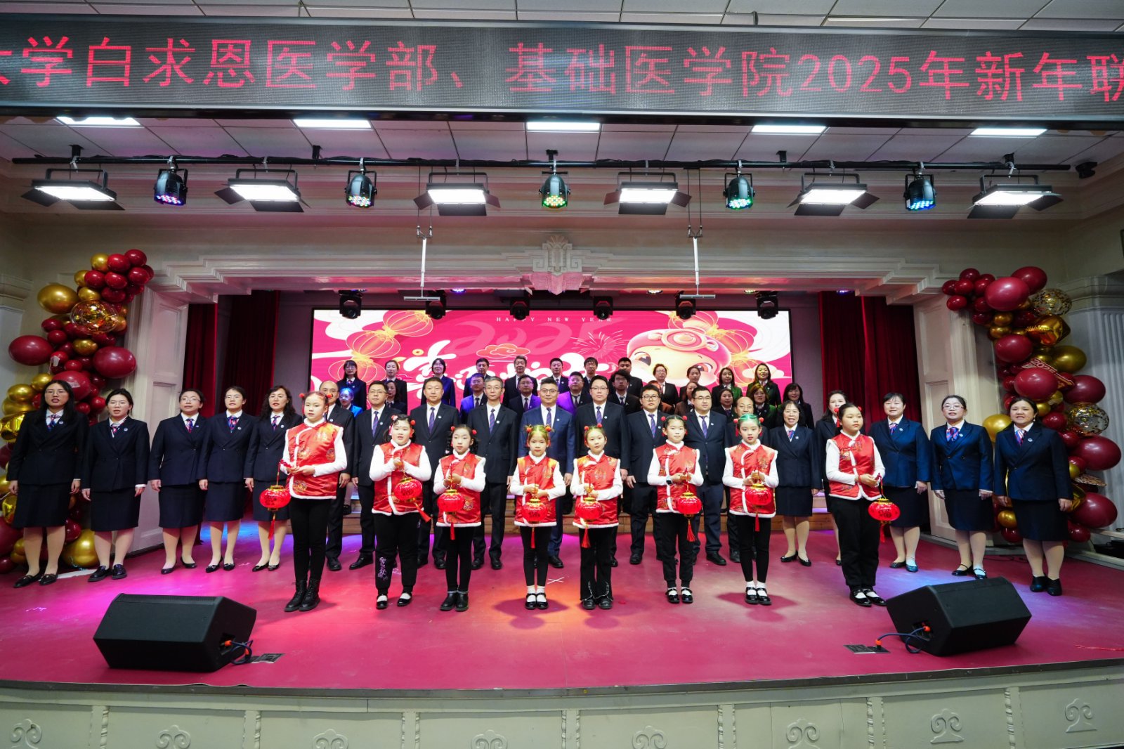 联合在基础楼二楼报告厅举办2025年新春联欢会,学部及学院现任、历任领导班子成员、部分退休老领导、学院合作单位负责人,师生代表共计二百余人欢聚一堂,共迎新春,欢庆佳节。