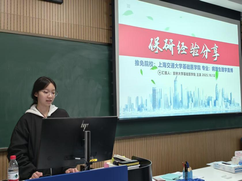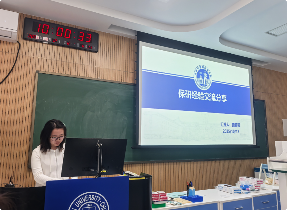 保研不仅是知识的比拼,更需要良好的心态支撑。已被报送至浙江大学的田春阳同学以自己的保研心路历程为核心,坦诚分享了过程中遇到的迷茫、焦虑与挫折,以及调整心态、克服困难的方法。她鼓励学弟学妹“脚踏实地,按部就班”地进行接下来的大三生活,不必过度焦虑未来,专注当下的学习与积累,同时积极相信付出会有回报;同时建议大家“勇敢踏出舒适圈”,主动进入实验室动手实践,积极联系老师,在挑战中提升自己,增强保研竞争力。她的分享传递了积极的备考心态,为同学们注入了信心与力量。