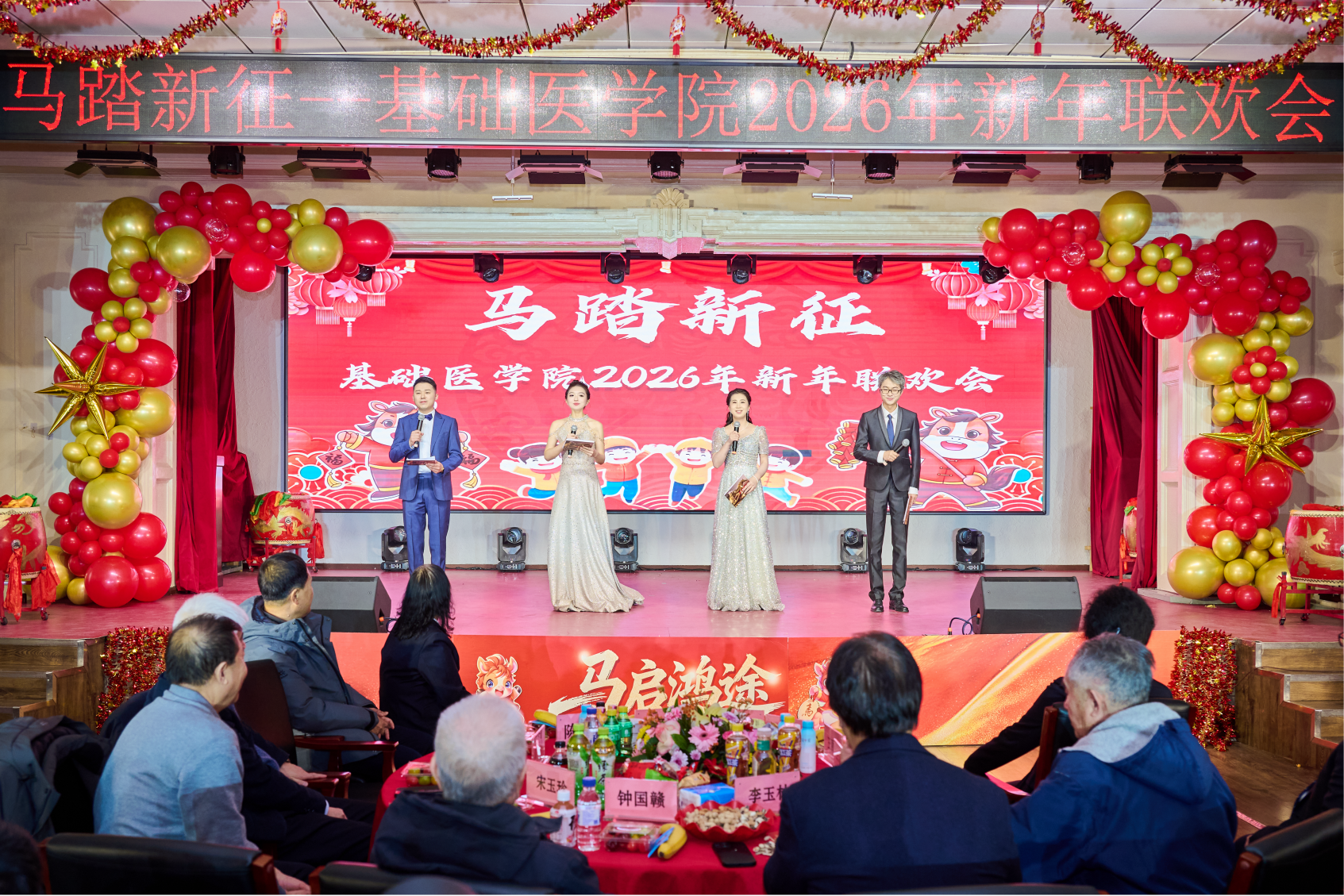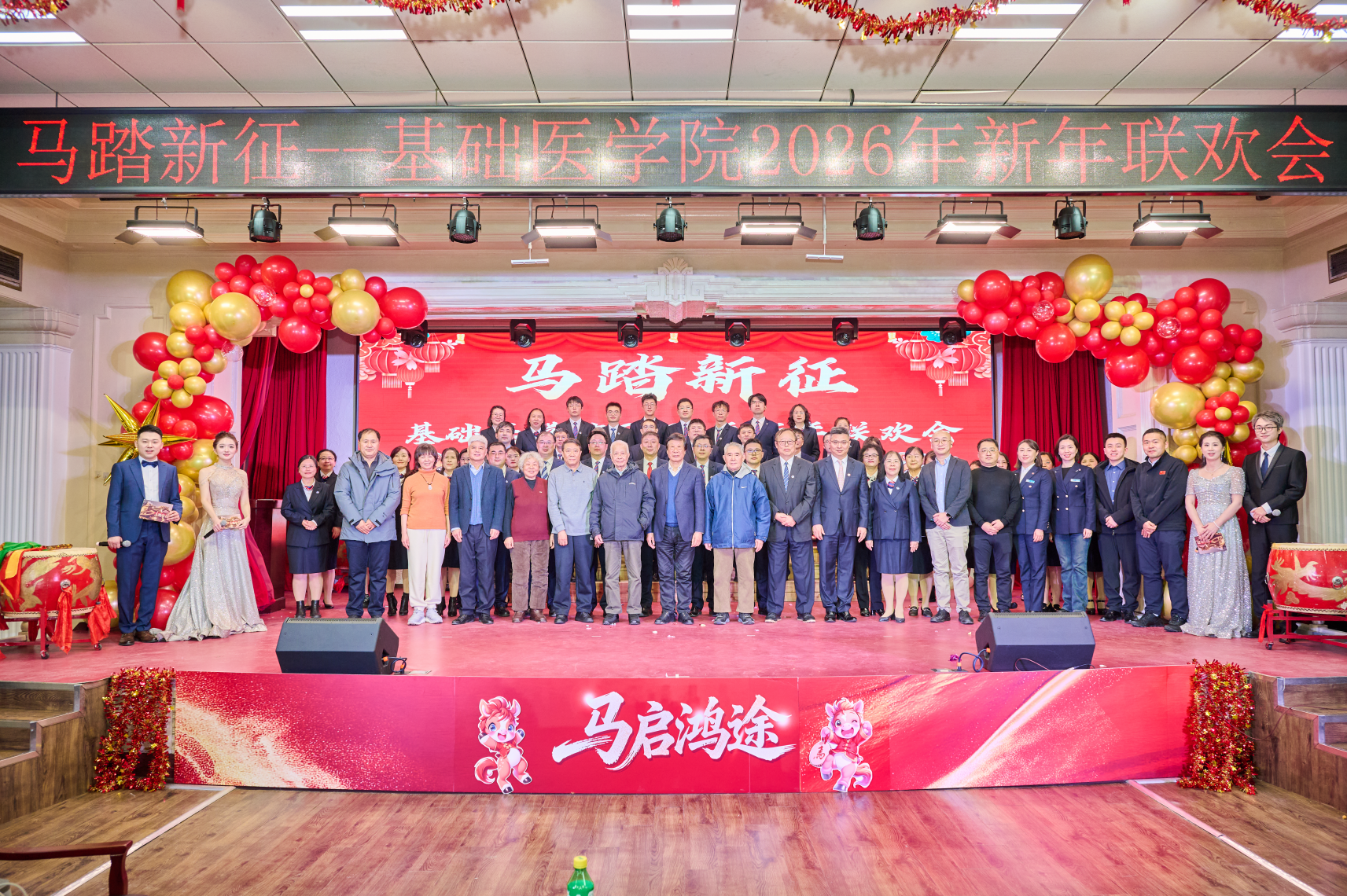 “凯歌高奏,不负育人使命;策马扬鞭,不负时代韶华。”联欢会在四位主持人铿锵有力的结尾词中圆满落幕。此次新春联欢会不仅是一场视听盛宴,更是一次凝聚人心、传承精神的盛会。回首2025,学院赓续红色血脉,深耕教学科研沃土,硕果盈枝;展望2026,全院师生将坚守立德树人初心,勇担新医科建设使命,在科研创新的道路上锐意进取,在人才培养的征途中笃行不怠,为建设中国特色、世界一流大学贡献欧博官网