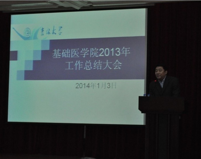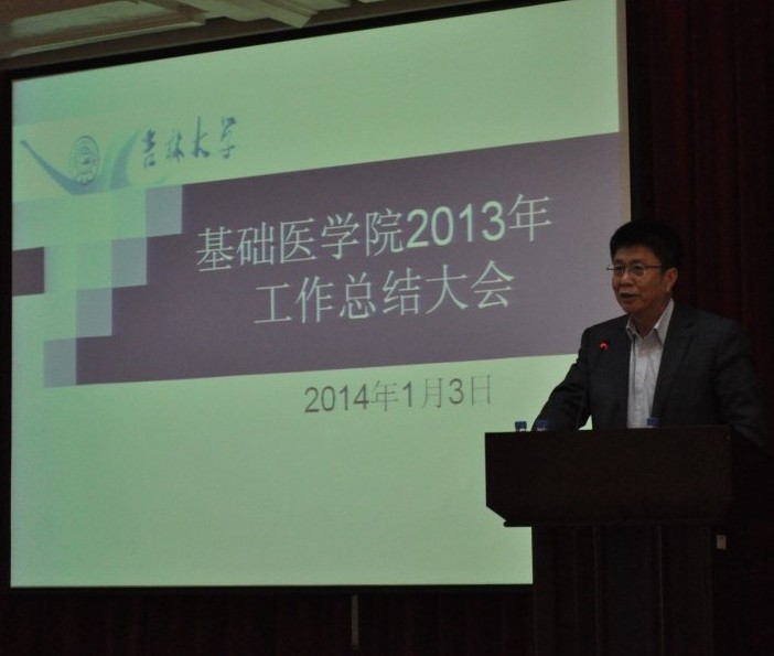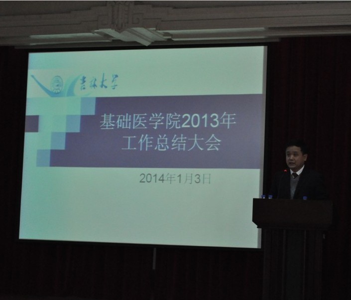 在二楼报告厅召开了2013年工作总结大会。吉林大学副校长兼白求恩医学部学部长王冠军、白求恩医学部常务副学部长李凡、党工委常务副书记高继成、副学部长徐红、副学部长兼医院管理办公室主任高占东、党工委副书记兼纪工委书记屈英和等出席会议,学院全体教职工和研究生代表参加大会。会议由学院党委书记孙赵华主持。