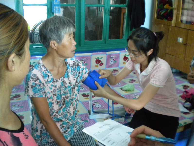 8月14日上午,实践队一行进行了此次活动中最后一次居民走访,选择了太安村较偏远的住户,村书记向我们交代这些住户的生活水平较差,我们在走访的过程中也发现他们的居住环境较为脏乱,这些居民并不知道维持屋内整洁干净的必要性,而且他们很多人在刚开始是拒绝我们为他们提供的免费检查和医疗卫生知识的宣传教育。他们认为我们既不给他们打针又不给他们吃药,只是给他们讲健康知识和测量血压是没有用的,他们并不懂得一级预防的重要性,在我们耐心的劝说下,终于有越来越多的村民接受了我们,我们向他们介绍了一级预防的重要性,并为他们解释了一些困扰他们的健康问题,其中有一户人家,他们家一共就两口人,丈夫在5年前得过小脑血栓,当时治疗后症状有所好转,家里人就没有听医生的劝告继续坚持治疗,结果回家后不久发生了二次血栓,再次接受治疗后并不见好,越来越重,而妻子早在20年前就被诊断为ITP,这些年来持续用激素治疗,已出现了骨质疏松、股骨头坏死等一系列症状,家里已经没有劳动力了,为了治病,家里已分文不剩,我们了解到这样的情况后都为这家人感到难过,在他们面前,我们也感受到了自己的无力,纵使有再多的医学知识,有再好的治疗方案,对于贫困村民来说,可选择的也就只有那么屈指可数的几种,这也就更反映了一级、二级预防的重要性,如果大家都能避免接触疾病的危险因素,在得病早期能够早期诊断、早期治疗,那么就会有更少的患者在病入膏肓后花大量金钱去医治的情况发生,而要他们认识到这一点,就需要我们对他们普及医疗卫生知识宣传教育,因此,我们深知自己任务的艰巨以及责任的重大。