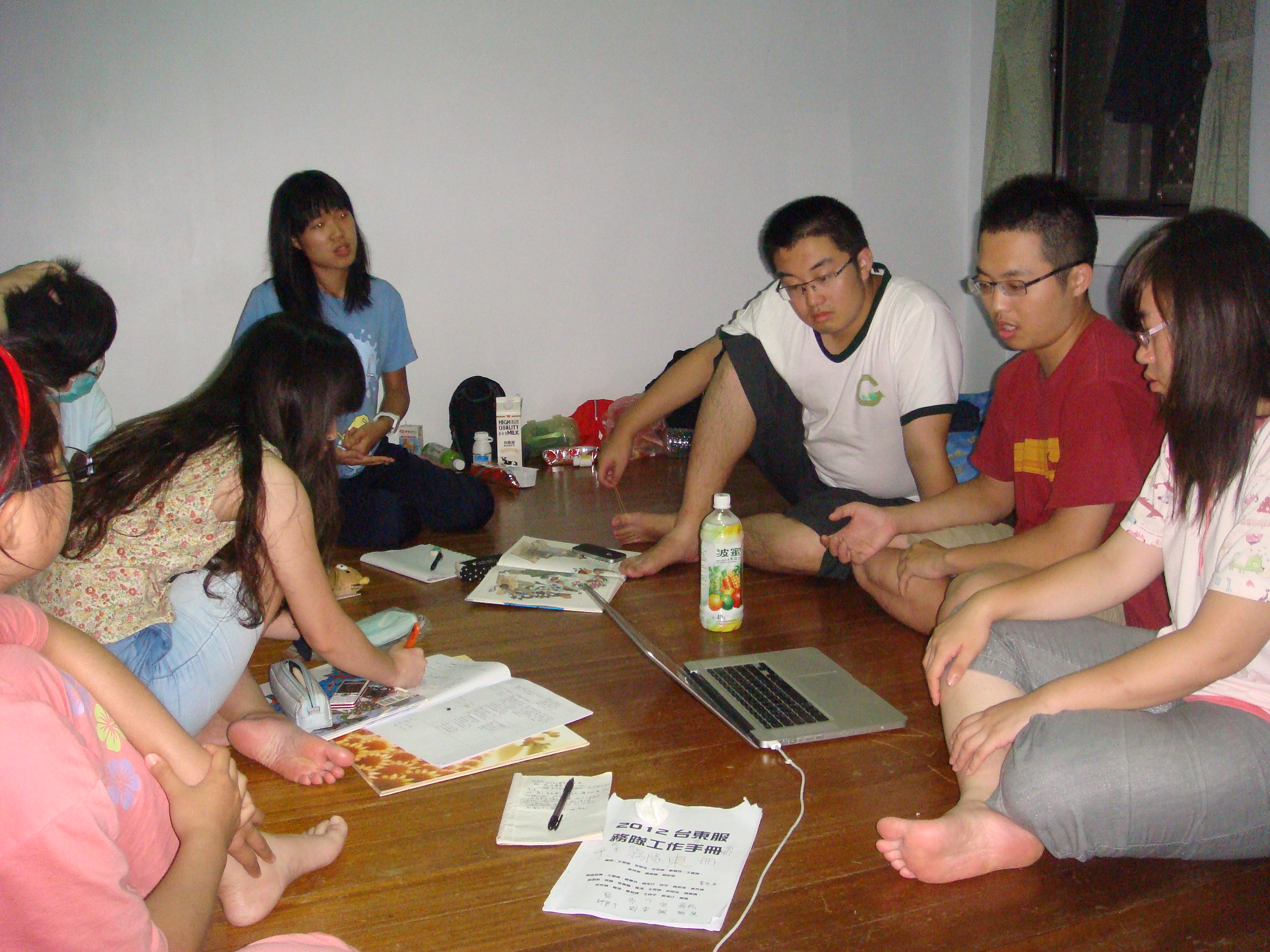 今天我们自然科技组与手工艺组的同学一起来到了台东县桃源村的社区服务部进行社区服务,服务对象是社区的老人。我们此次活动的主要内容是教老人们健康操,为此我们事先进行了多次训练。阳明大学同学编排的健康操动作幅度较大,这让我们有些担心,怕老人接受不了。