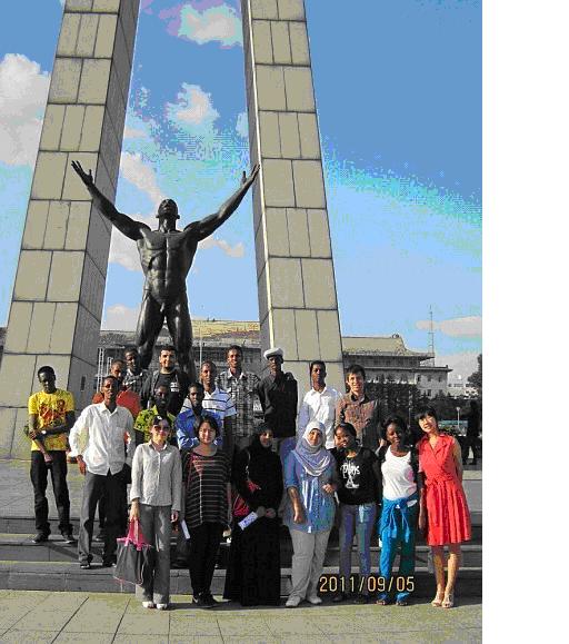 然后,以医学院办公楼为起点留学生们参观了校园及周边的环境,整个过程留学生们热情高涨,气氛融洽,笑语不断。讲解人秉着既不忽视生活细节又普及校园文化的原则,不但对沿途的超市,药店,医院等建筑进行说明,也为大家讲解了校园内的设施文化历史和学校的骄人成绩,如基础楼前的白求恩像等,还对长春的天气,景点,商业街,美食文化等也都进行了一一介绍,同学们兴趣盎然,认真倾听,对这次校园之旅充满期待,并不时提出自己的疑问,讲解人也尽量提些问题让大家来回答以提高同学们的积极性,使气氛更加热烈,尤其是在文化广场,同学们对广场四方的塑像都很好奇,不停的问着它们都代表着什么含意,兴趣浓厚。很多同学留影纪念,感叹不已。