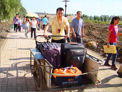 每晚都有迎新志愿者分别在五月花广场和基础园区一公寓迎新点值班,负责接送夜间到达的新生。由于迎新接待站距离宿舍比较远,志愿者特意找来手推车,分批为学生运送行李。烈日下他们汗水如注,但志愿者脸上灿烂的微笑却从未消失过。细致入微的服务也使得2011级新生真正体会到了亲人般的关心、如家般的温暖。此外,为做好迎新工作,学院还专门为学生及家长准备了休息区,并安排专人看守行李,排队时为新生准备了遮阳伞。