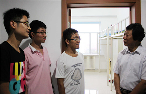 8月28日下午15点30分,伴着清风细雨,白求恩医学院院长李玉林、党委书记屈英和、常务副院长孙连坤来到位于中心校区的基础园区一公寓---白求恩医学院 2011级学生宿舍看望新同学。