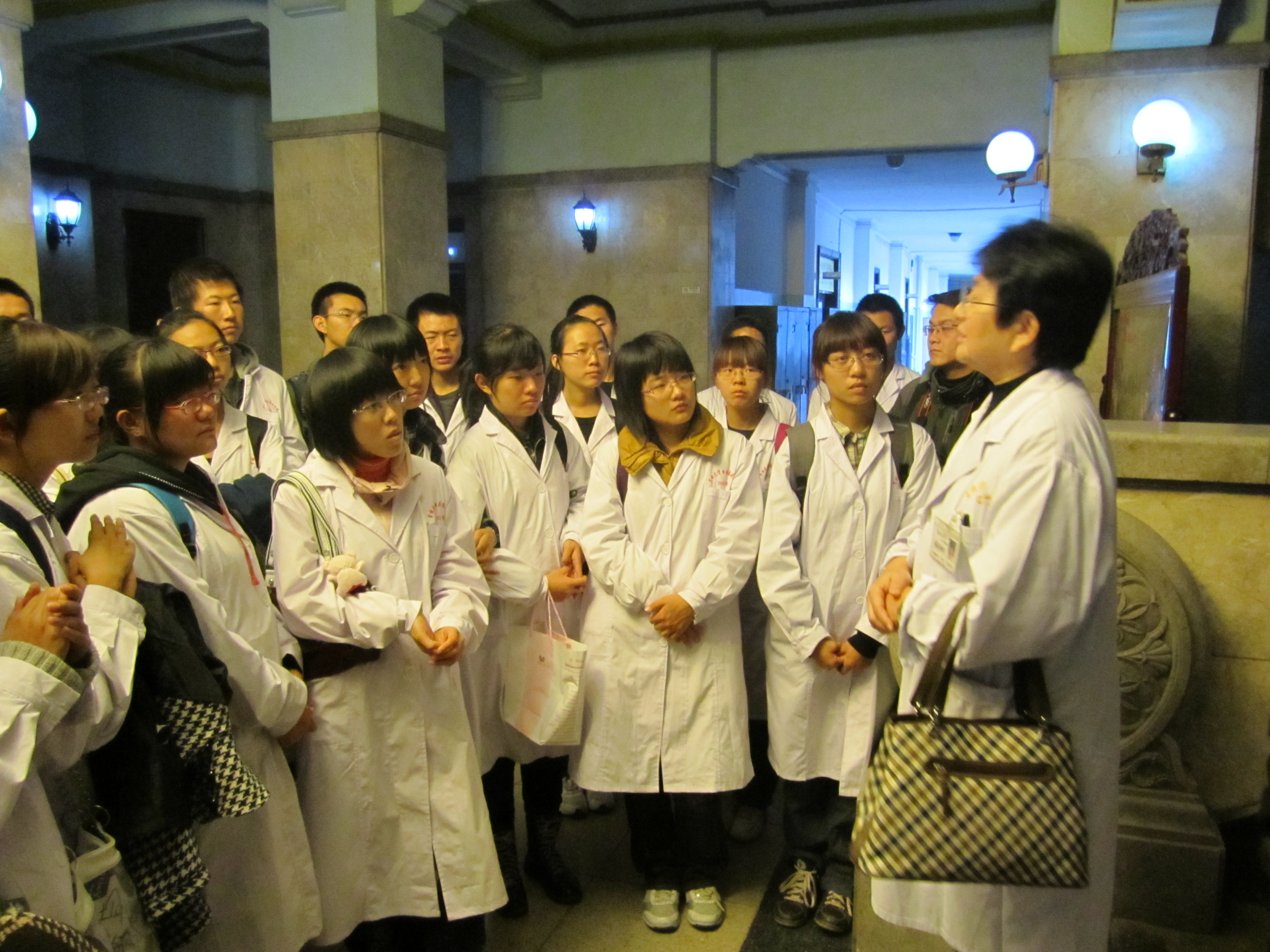 10月28日13时,吉林大学白求恩第一医院内科教授、全国政协委员、全国优秀教师、博士研究生导师、吉林大学学位委员会副主任、白求恩医学院701002班“名师班主任”迟宝荣带领班级全体同学参观了吉林大学白求恩医学院基础楼。
