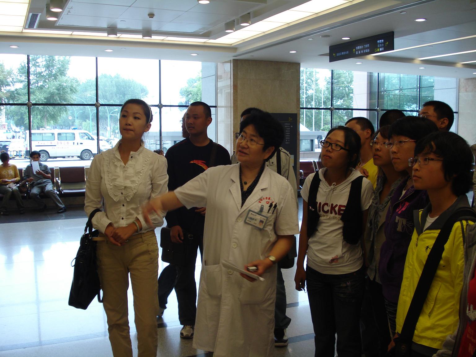 迟教授首先将同学们带到医院门诊大厅白求恩塑像前,认真地为同学们讲述了吉林大学医学事业的发展史,告诫同学们要谨记历史、不忘先辈功绩,并与全体同学合影留念。随后迟教授和同学们来到环境优雅的病人休息区,在这里同学们充分感受到了白求恩第一医院以病人为中心的良好氛围。最后迟教授带领同学们参观了检验科、内镜中心、眼科以及儿科,为同学们详细介绍了医院的情况。