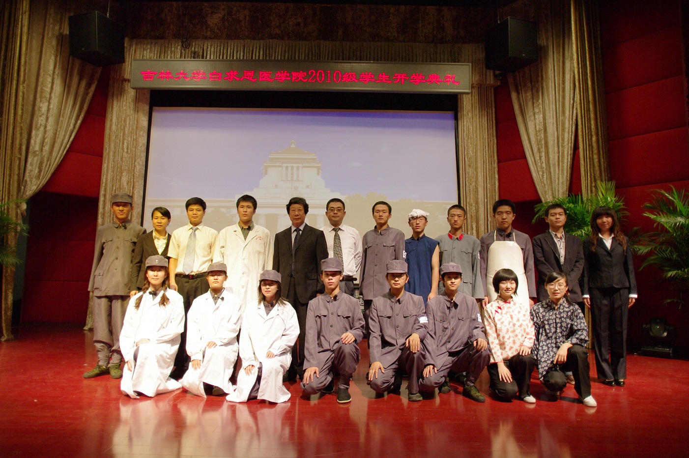 9月1日,白求恩医学院组织2010级全体同学观看话剧《白求恩》,原吉林大学常务副校长、白求恩医学院院长李玉林,学院党委书记屈英和与同学们一同观看了话剧。