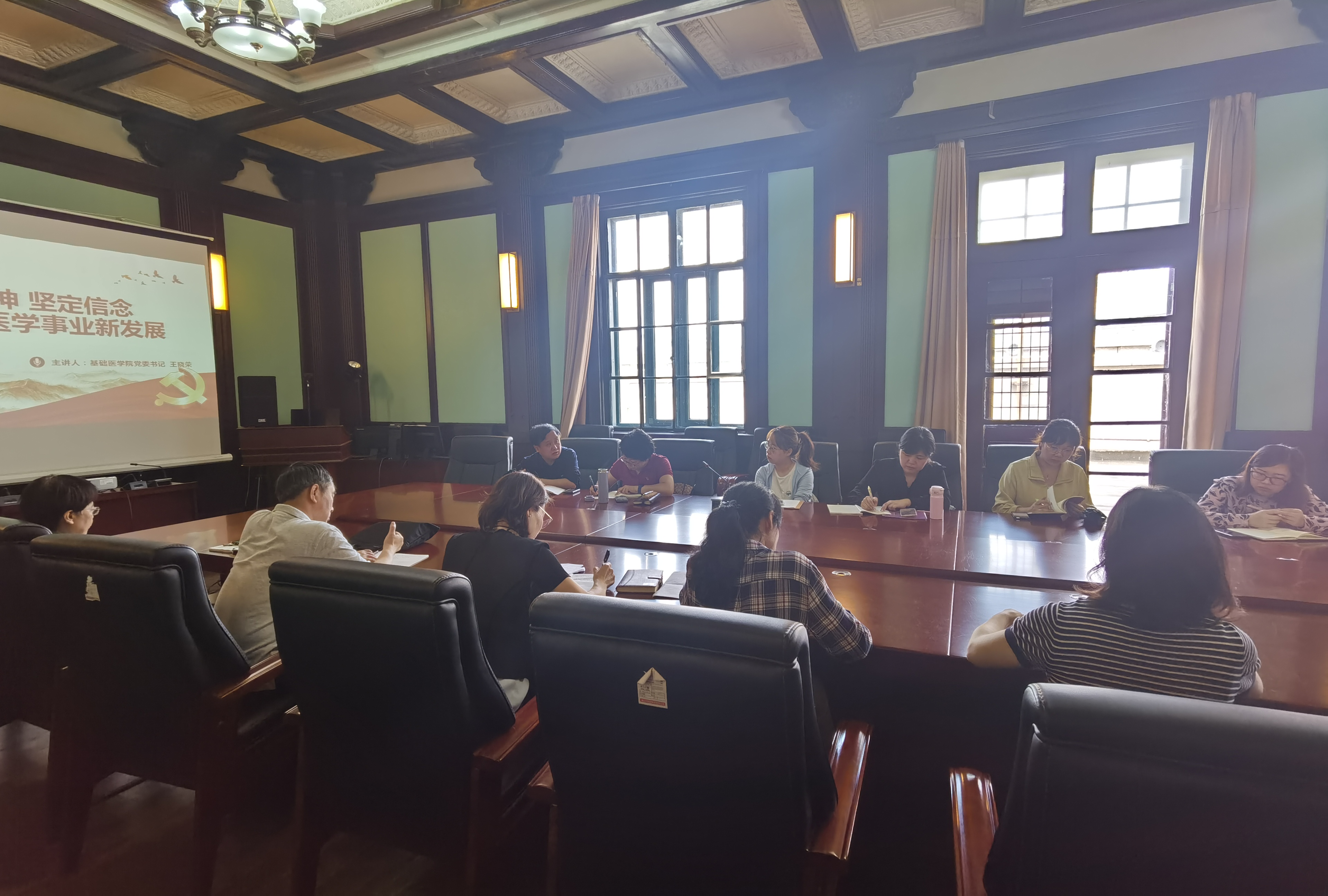 首先,王晓荣书记以“传承精神 坚定信念 助推基础医学事业新发展”为主题为大家上了鼓舞人心的一课。她再次强调了党史学习教育活动的重要意义及核心内涵,同时号召大家通过党史学习教育活动,凝练学院、学系精神,孜孜不倦、严谨求真、开拓创新。