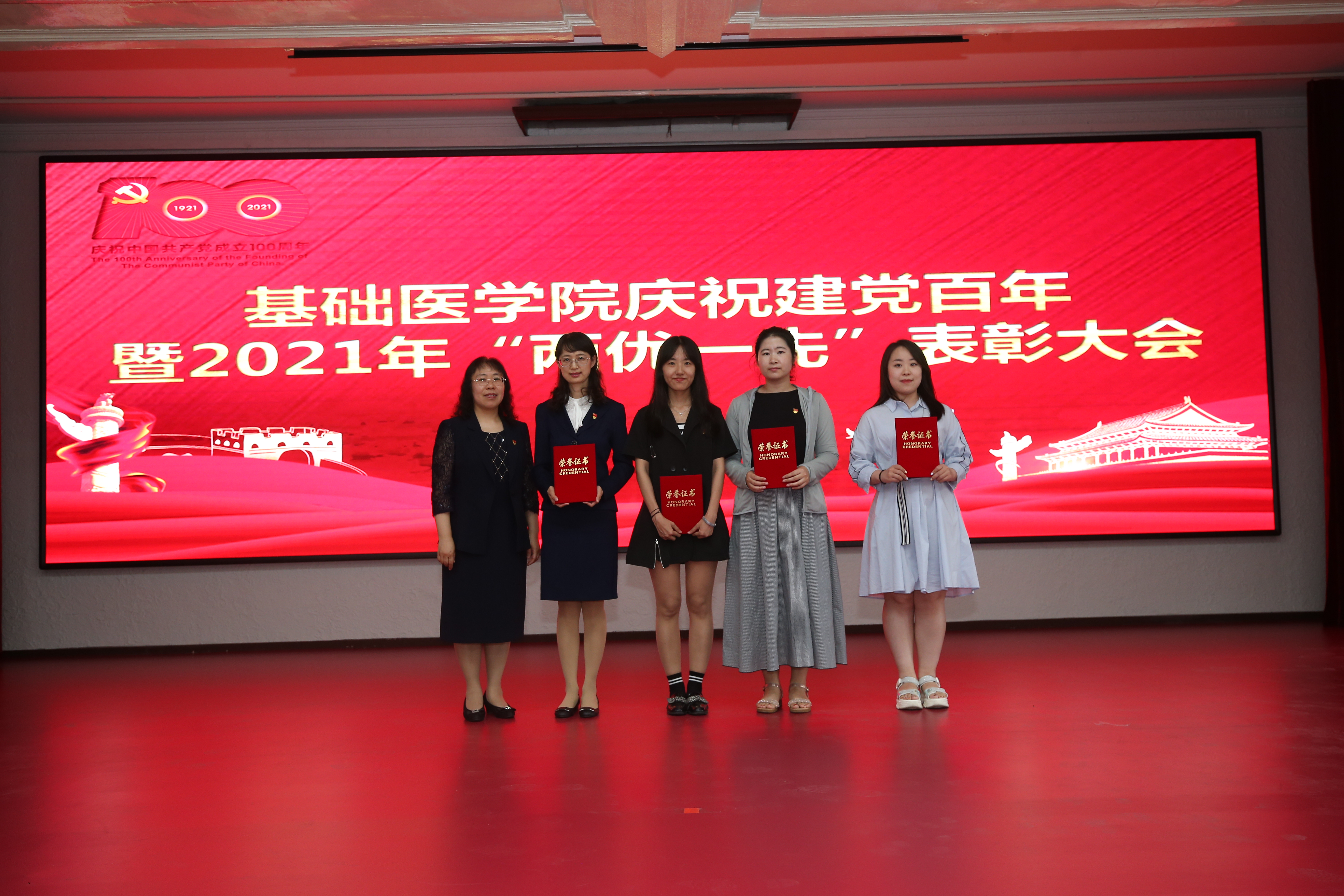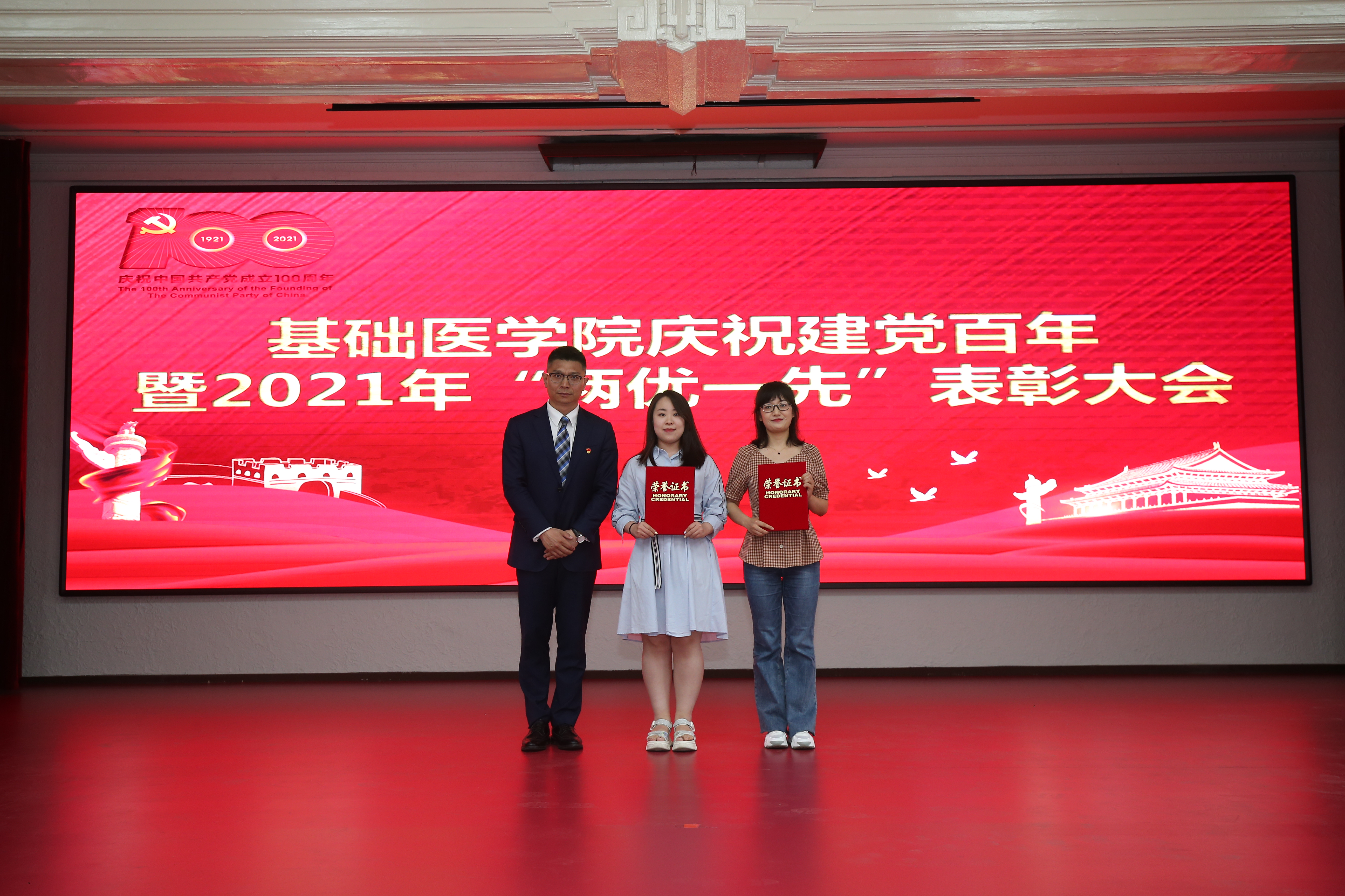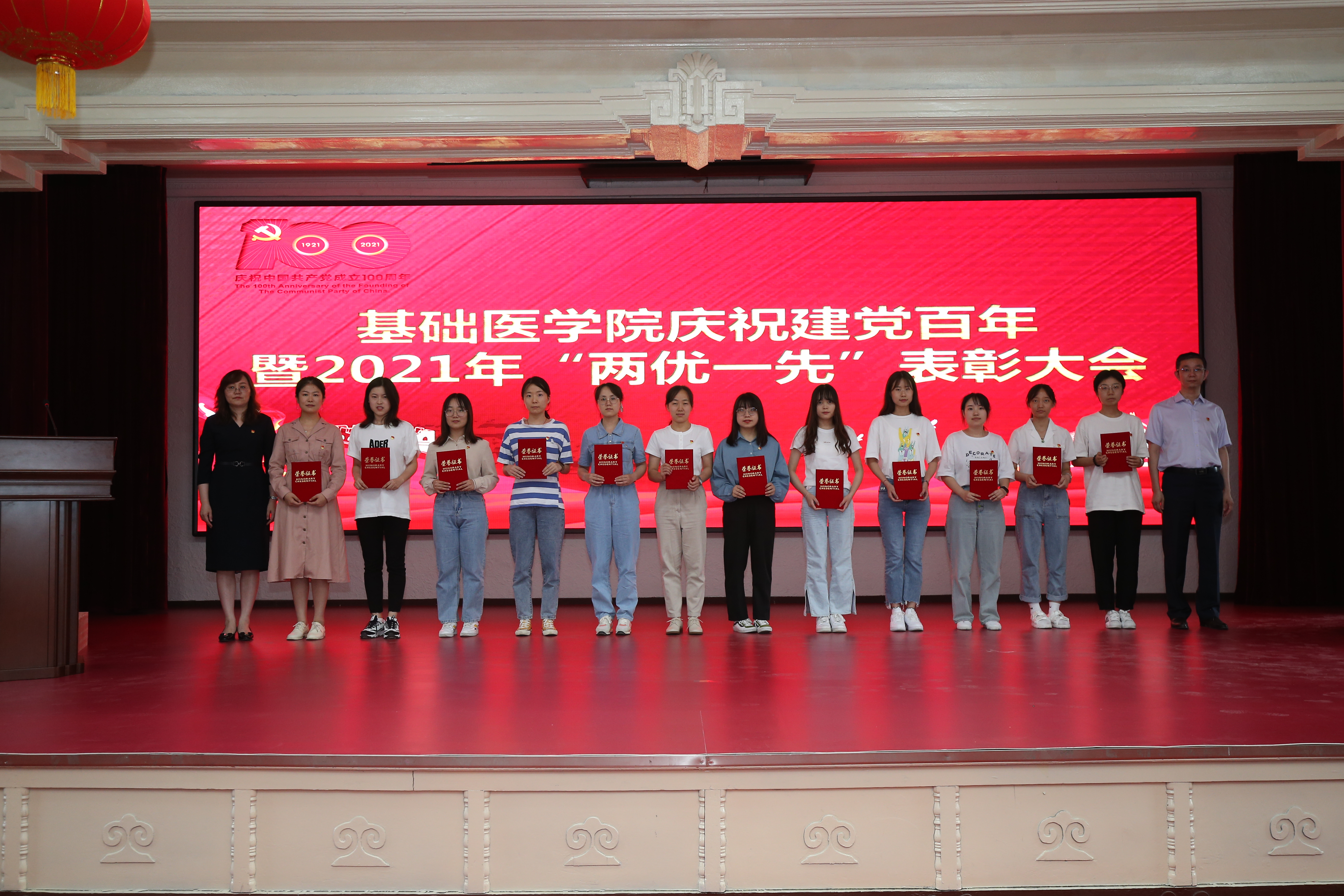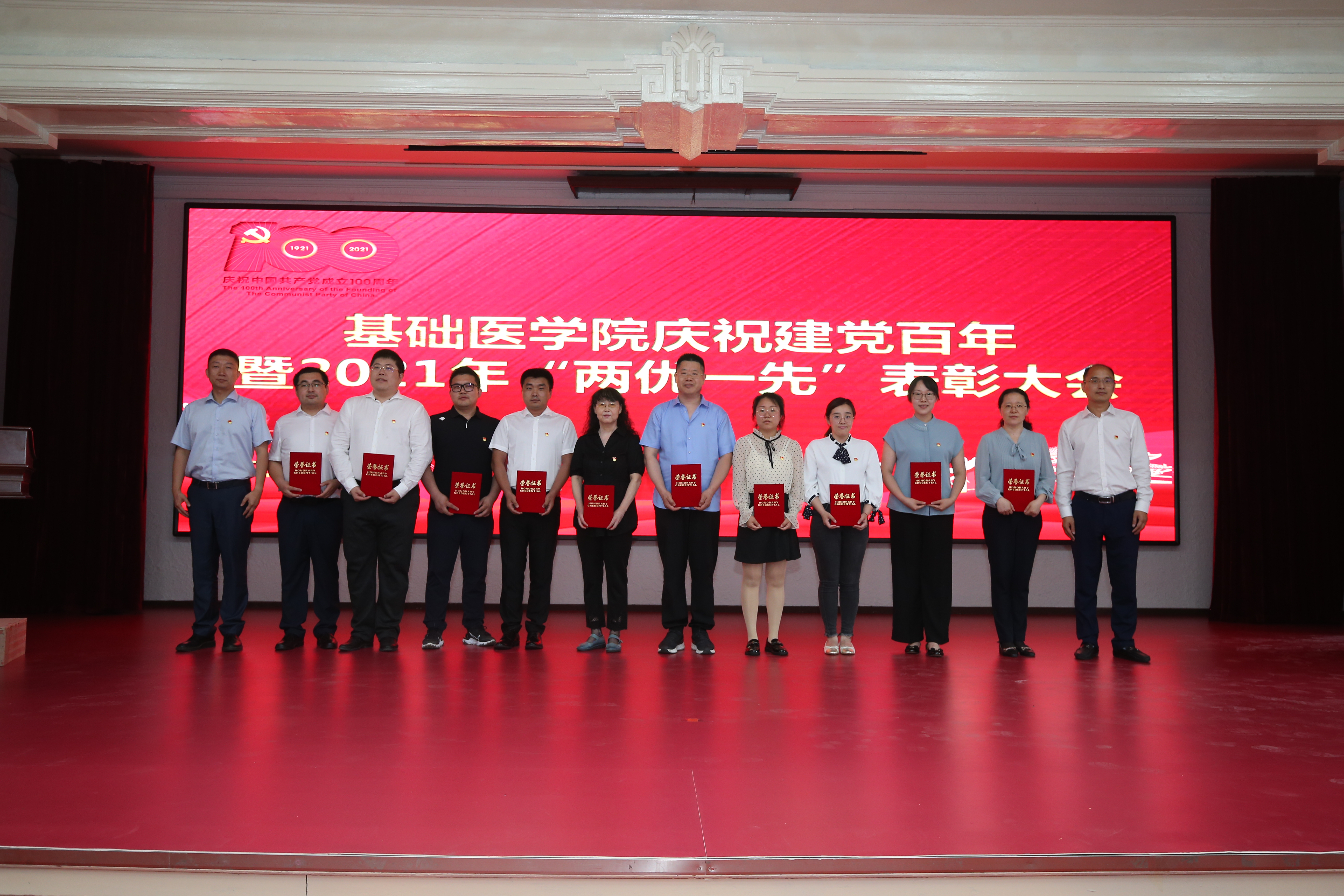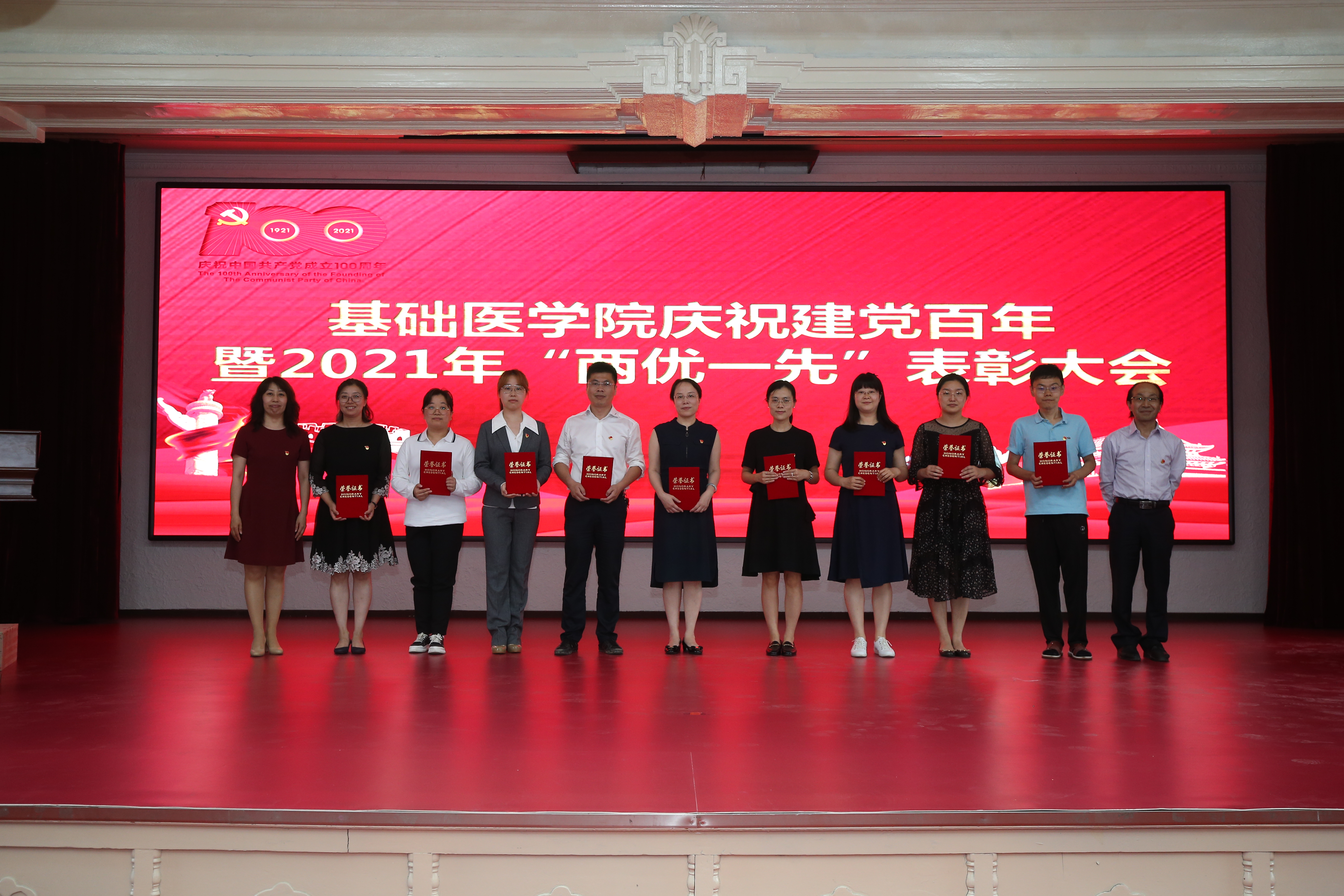 隆重召开庆祝建党100周年暨2021年“两优一先”表彰大会。会议由学院党委副书记、纪委书记曹国丽主持。