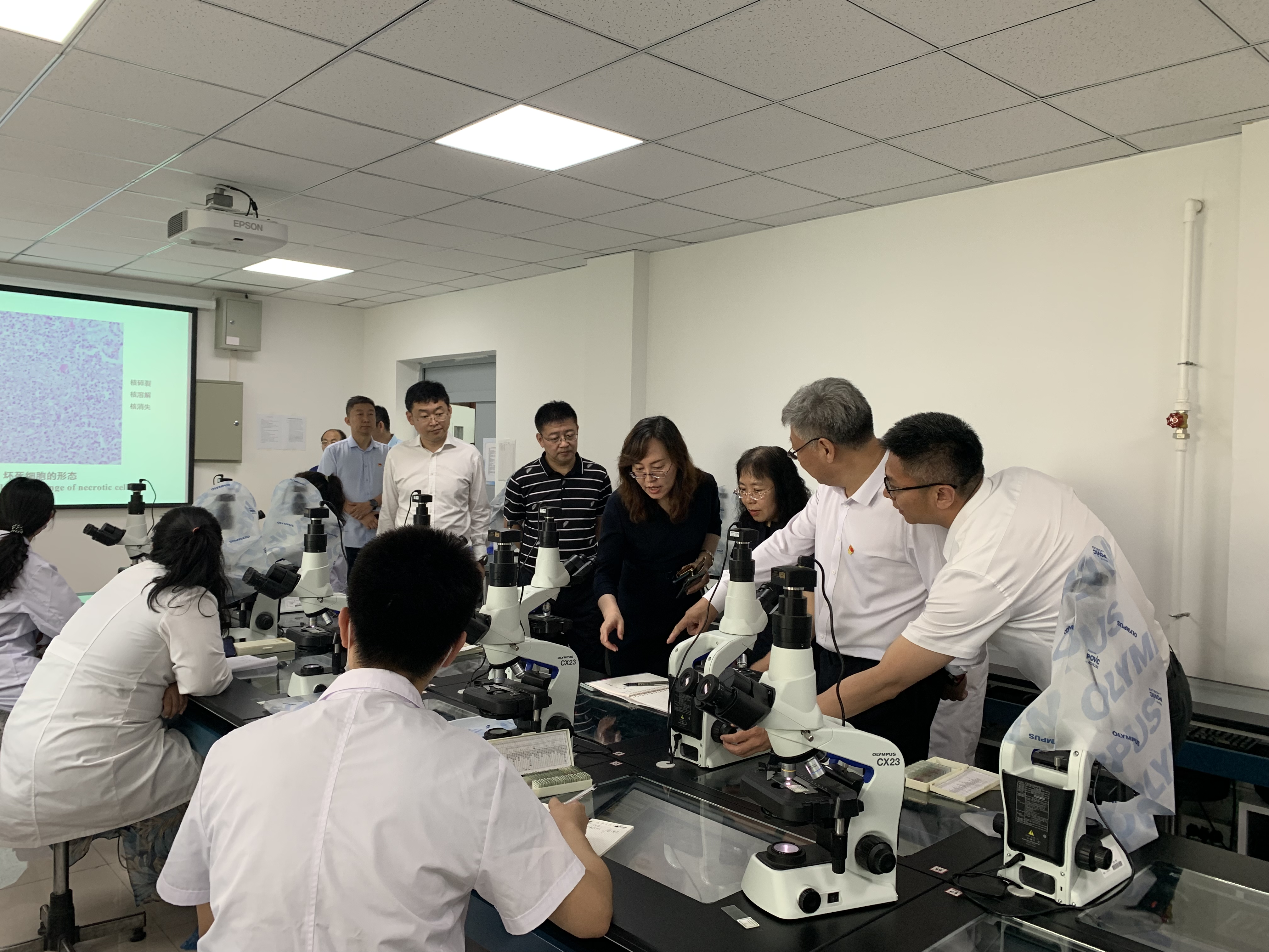 院长王放的工作汇报,随后,走进实验室向师生表达问候。在可移动实验平台,于蕾老师和学生们正在做的家兔呼吸运动的调节手术演示实验,学生可通过清晰的大屏幕看到手术演示全过程,真正实现互联互通,实时互动。在病理实习课堂,观摩了何旭老师“损伤的修复”课程,观看了学生的实验演示并亲切问候同学们的学习状况,病理生物学教育部重点实验室主任、副院长辛颖向冯书记介绍了病理学形态实验的相关情况。冯书记对同学们的实操能力给予了充分肯定。在分子生物学实验室,老师正在带领同学们进行转基因斑马鱼克隆实验。斑马鱼是国际上用于快速研究人类疾病信号传导途径、有效药物高通量筛选的最佳模式生物之一。冯书记对学院在斑马鱼方面的前沿研究表示肯定并寄予厚望,期待学院的斑马鱼研究能在探索人类疾病发病机理,筛选治疗靶点,进行新药开发以及药物毒性与安全性评价上发挥更大的作用。最后,冯书记一行来到医学影像虚拟解剖联合实验中心检查调研,参观3D打印白求恩像,观看了欧博官网