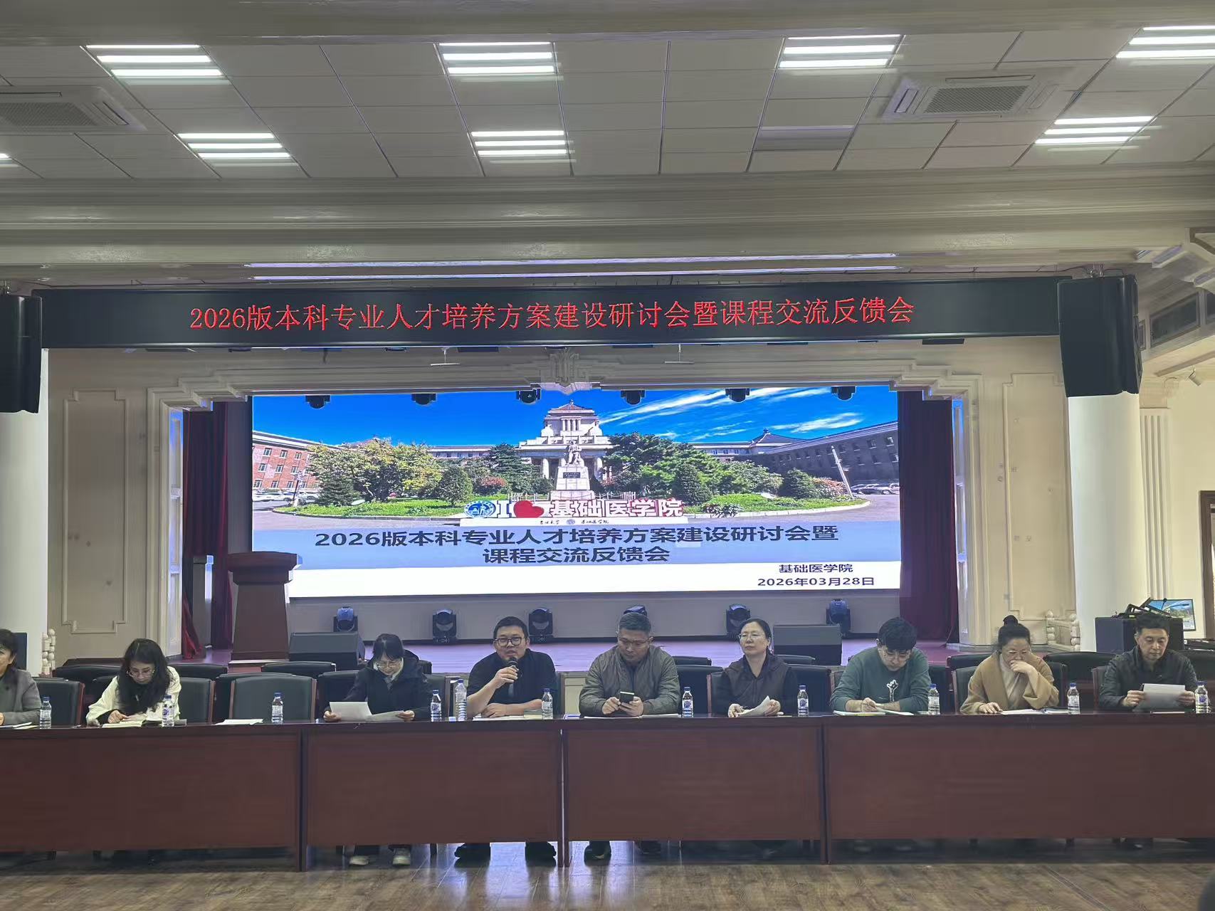 召开2026版本科人才培养方案研讨会暨课程建设师生交流反馈会。学院院长王放,教学副院长杨明,生物医学科学专业各课程负责人、基础医学教育教学发展中心委员、各年级学生代表及教务办公室全体人员参加会议。会议由教学副院长杨明主持。
